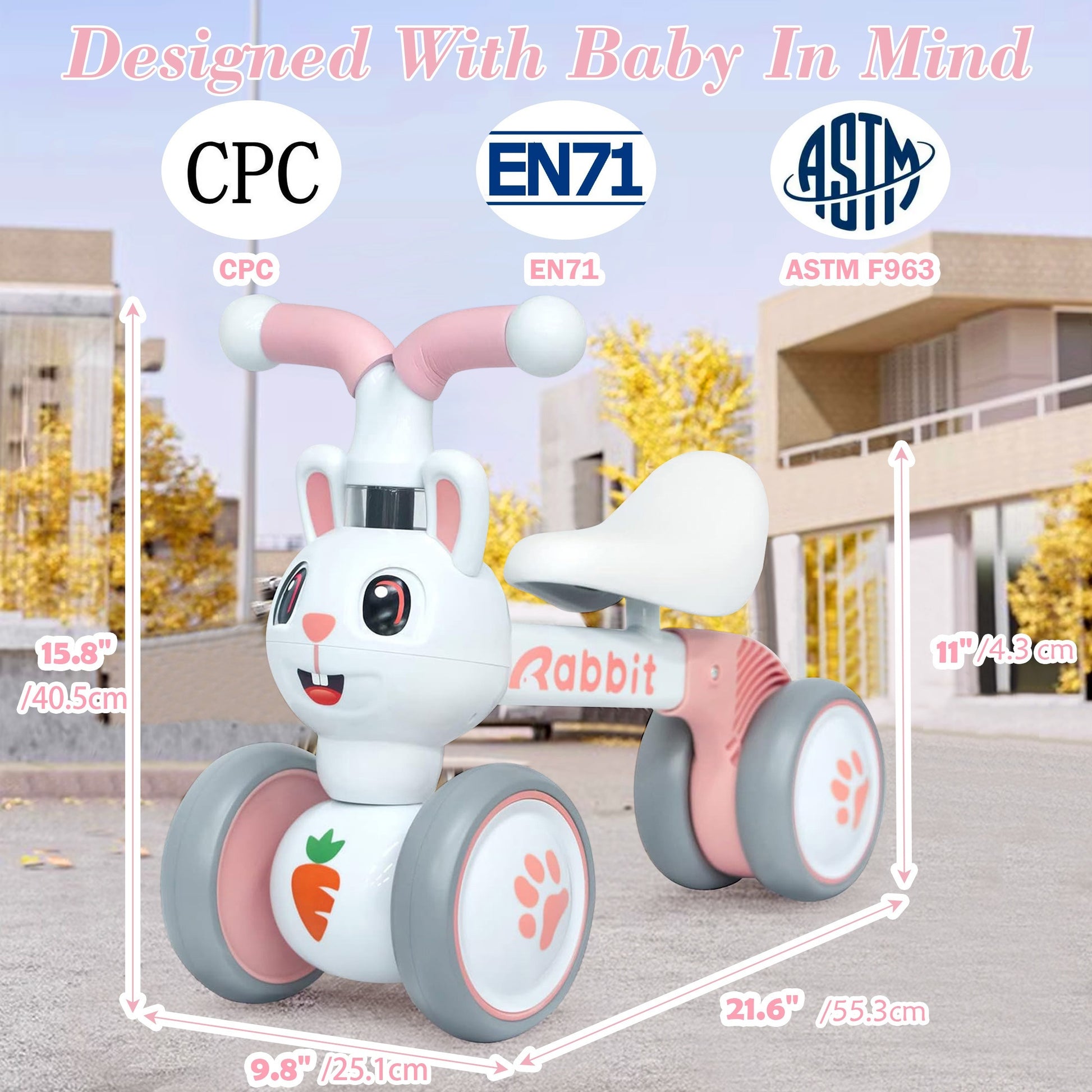 Baby Balance Bike With 4 Wheels, 12-36 Months