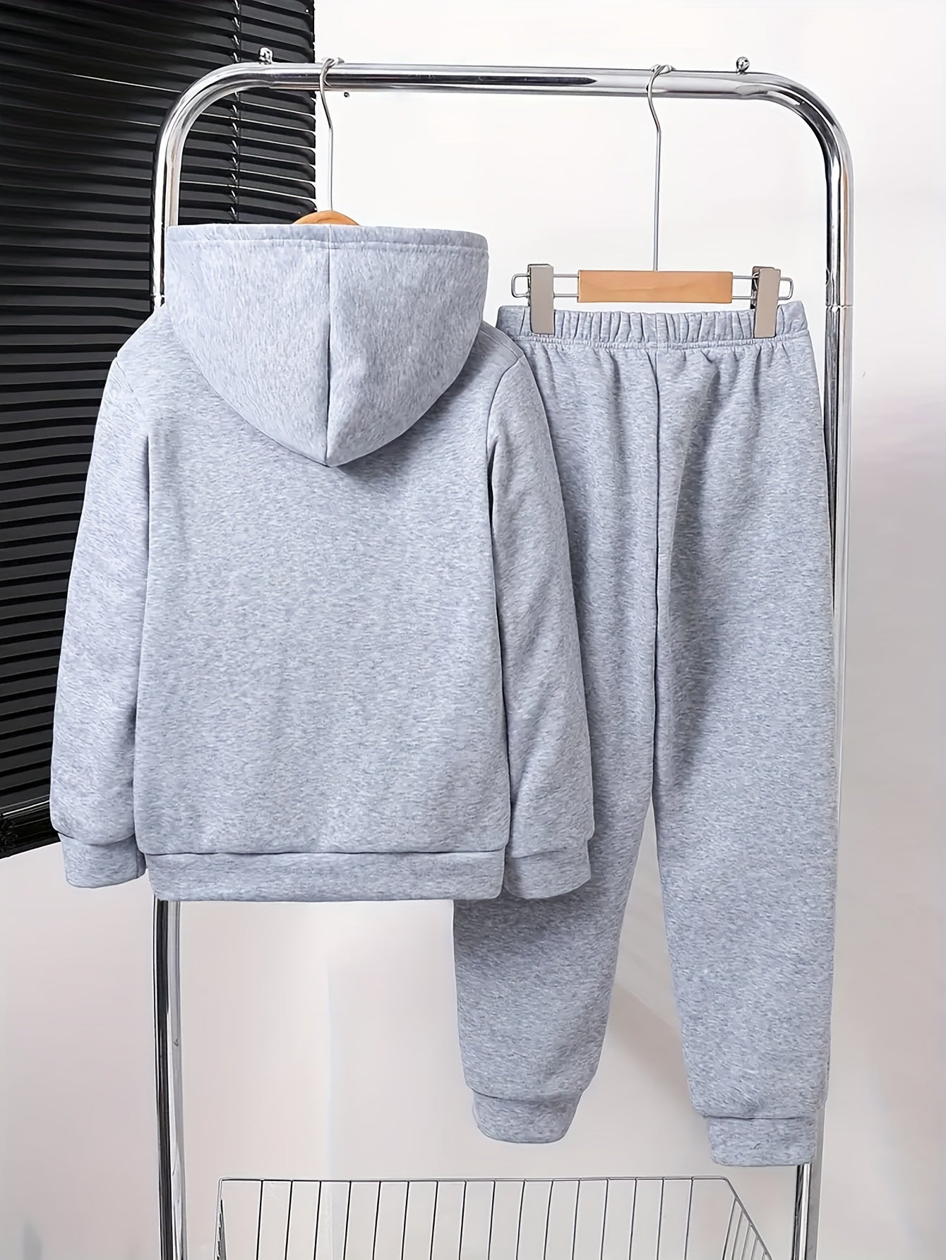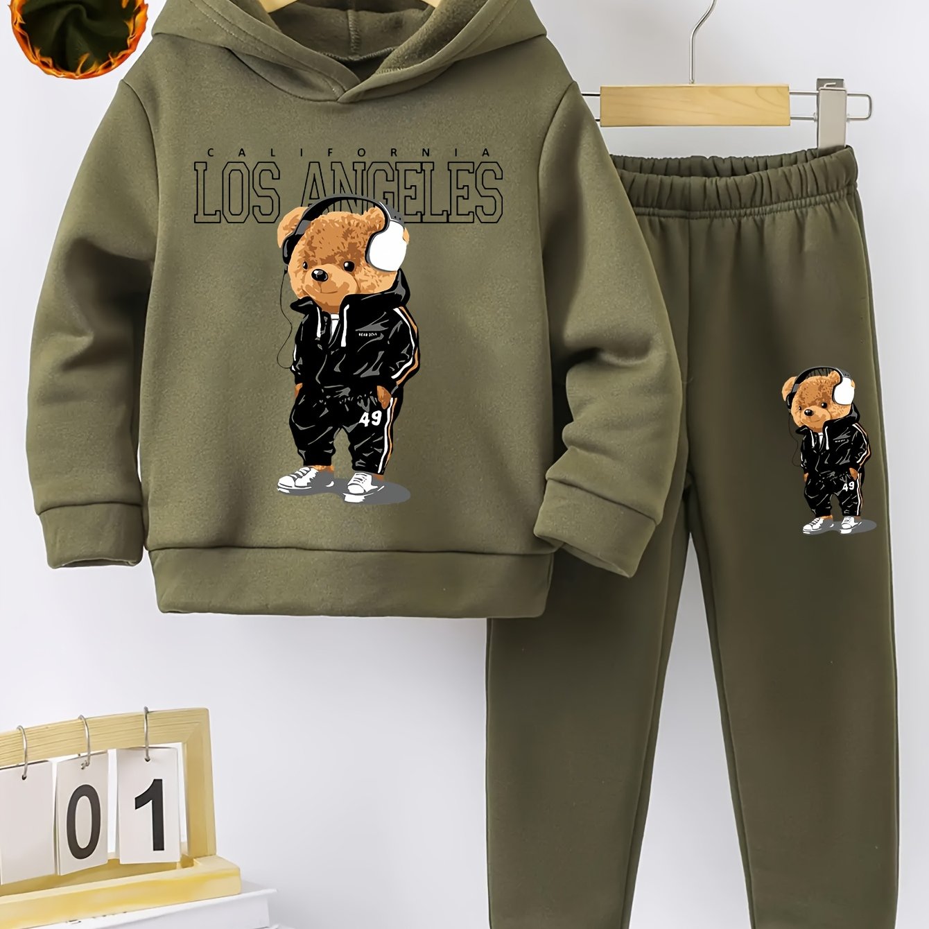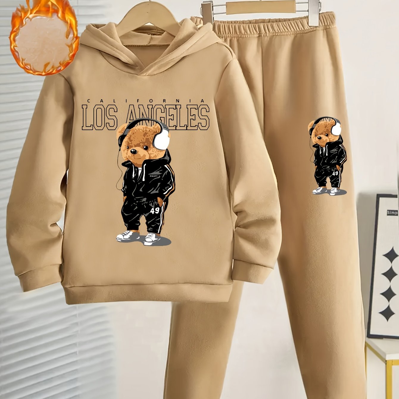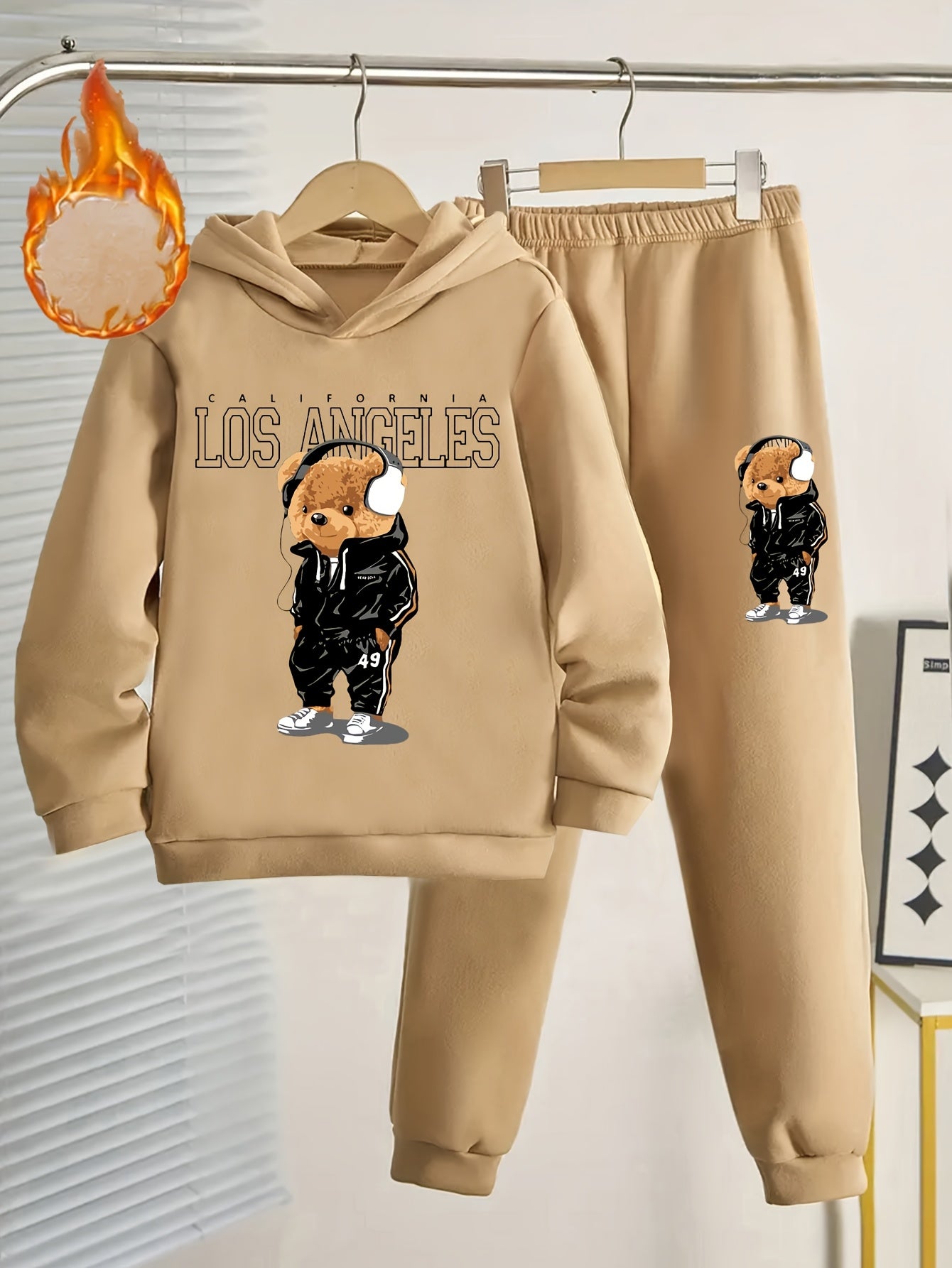 Boys' Cozy Fleece-Lined Hoodie & Joggers Set with Cool Cartoon Bear Print -