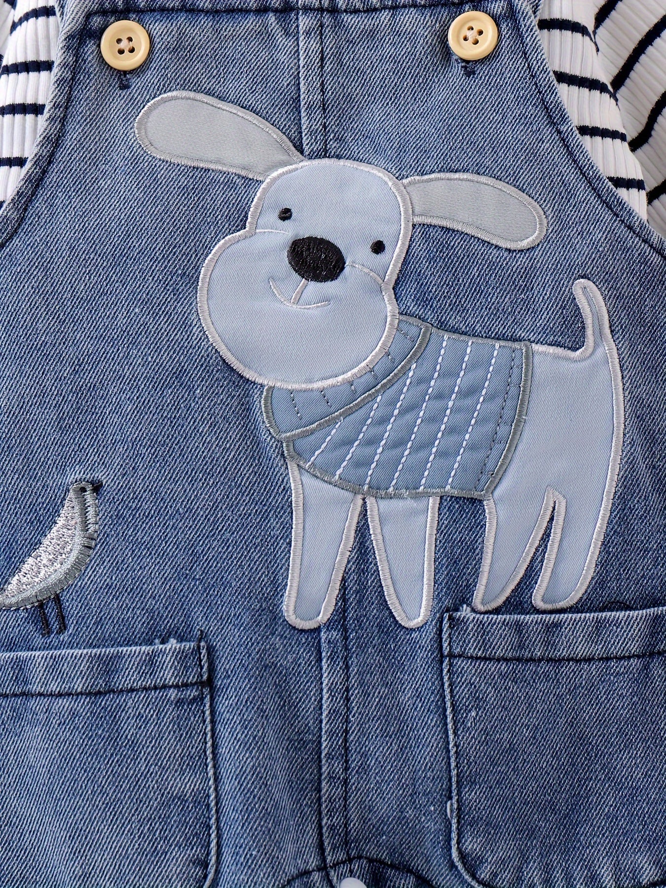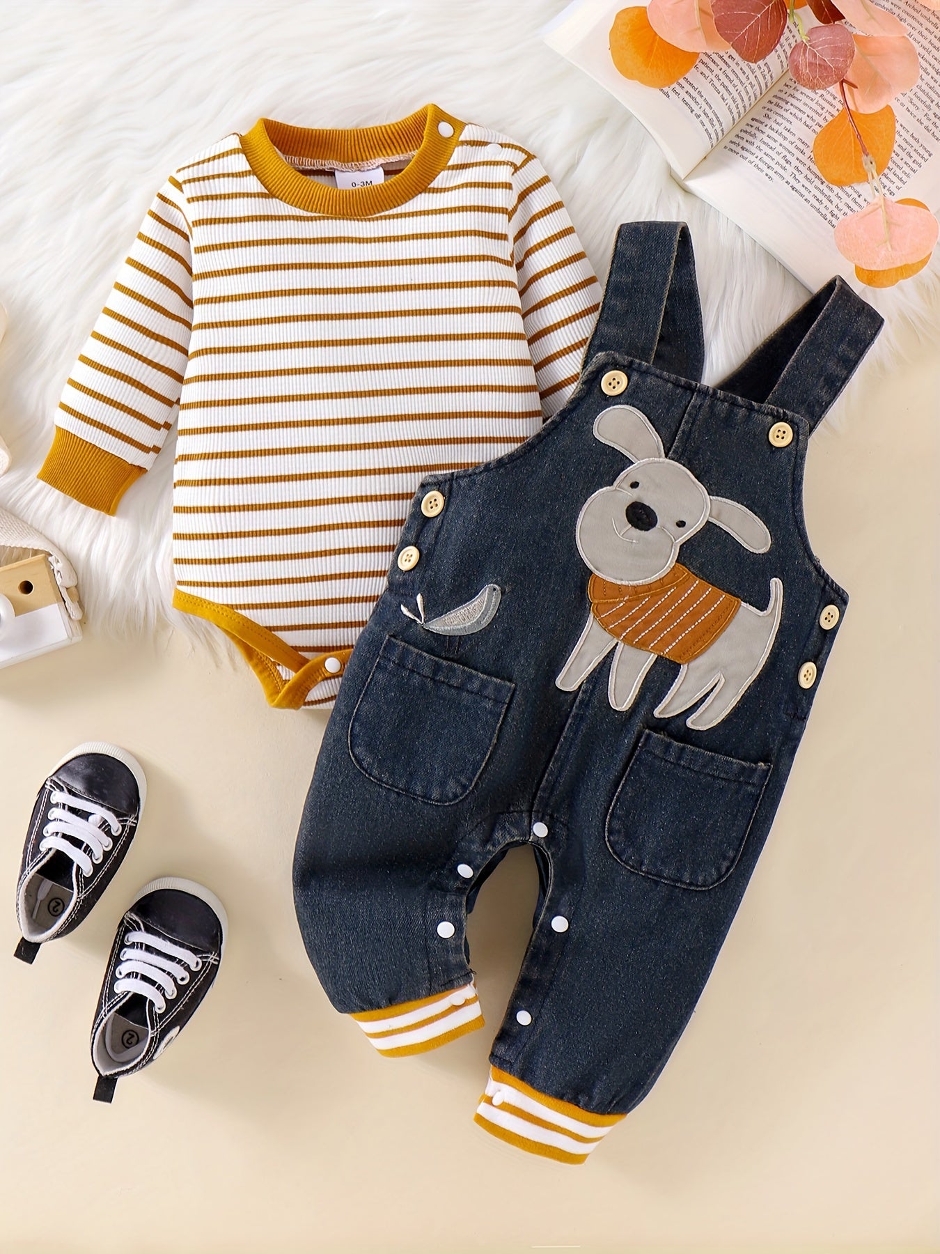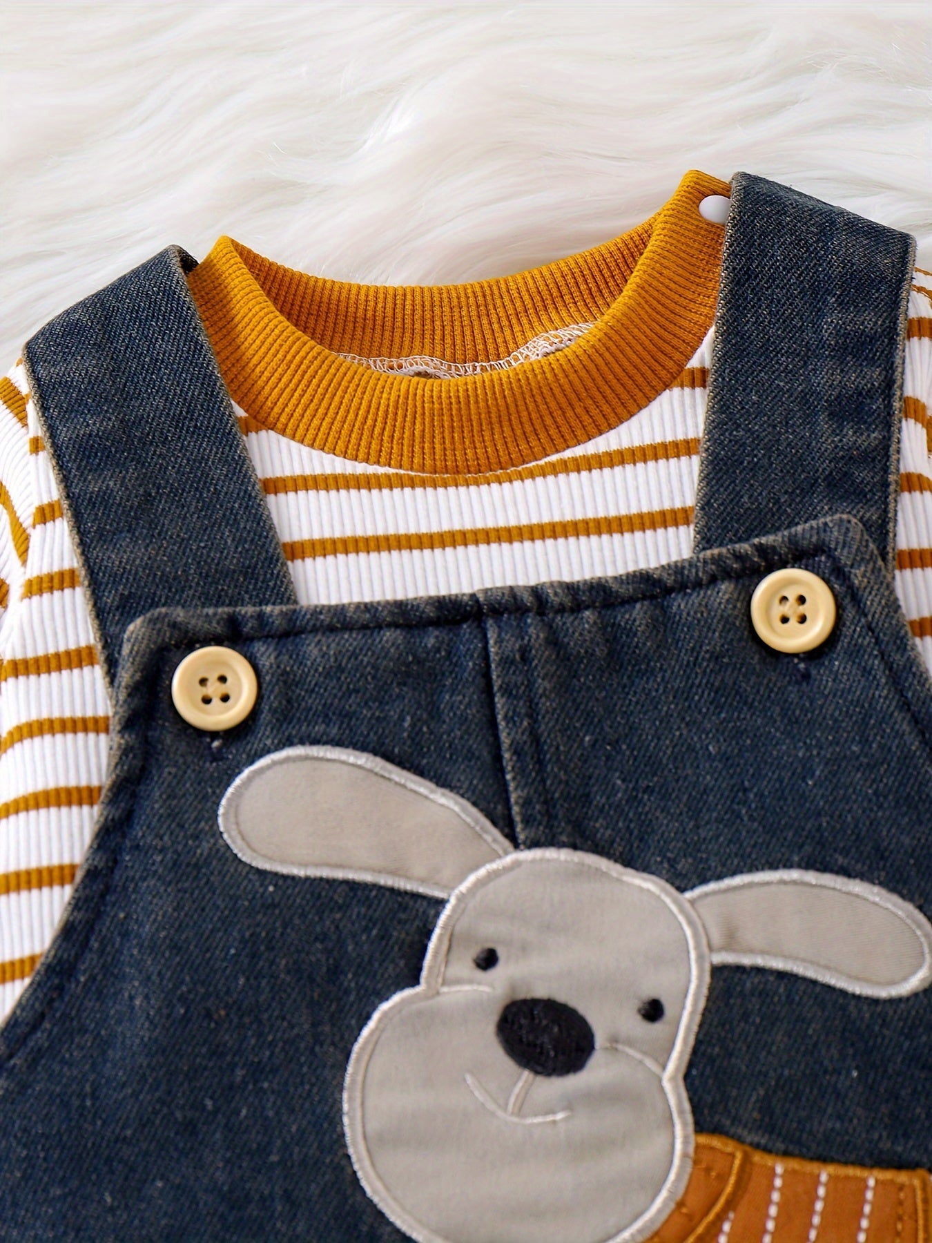 Cartoon Animal Pattern Suspender Trousers Jumpsuit Set
