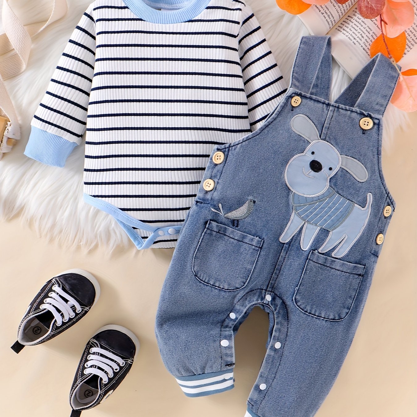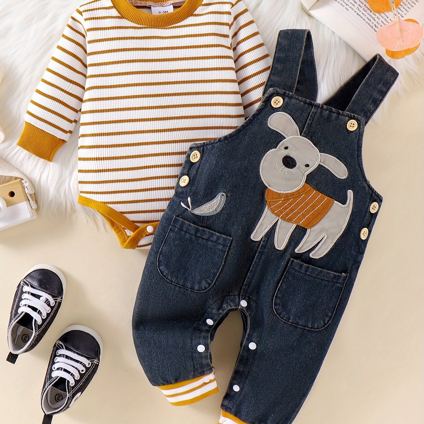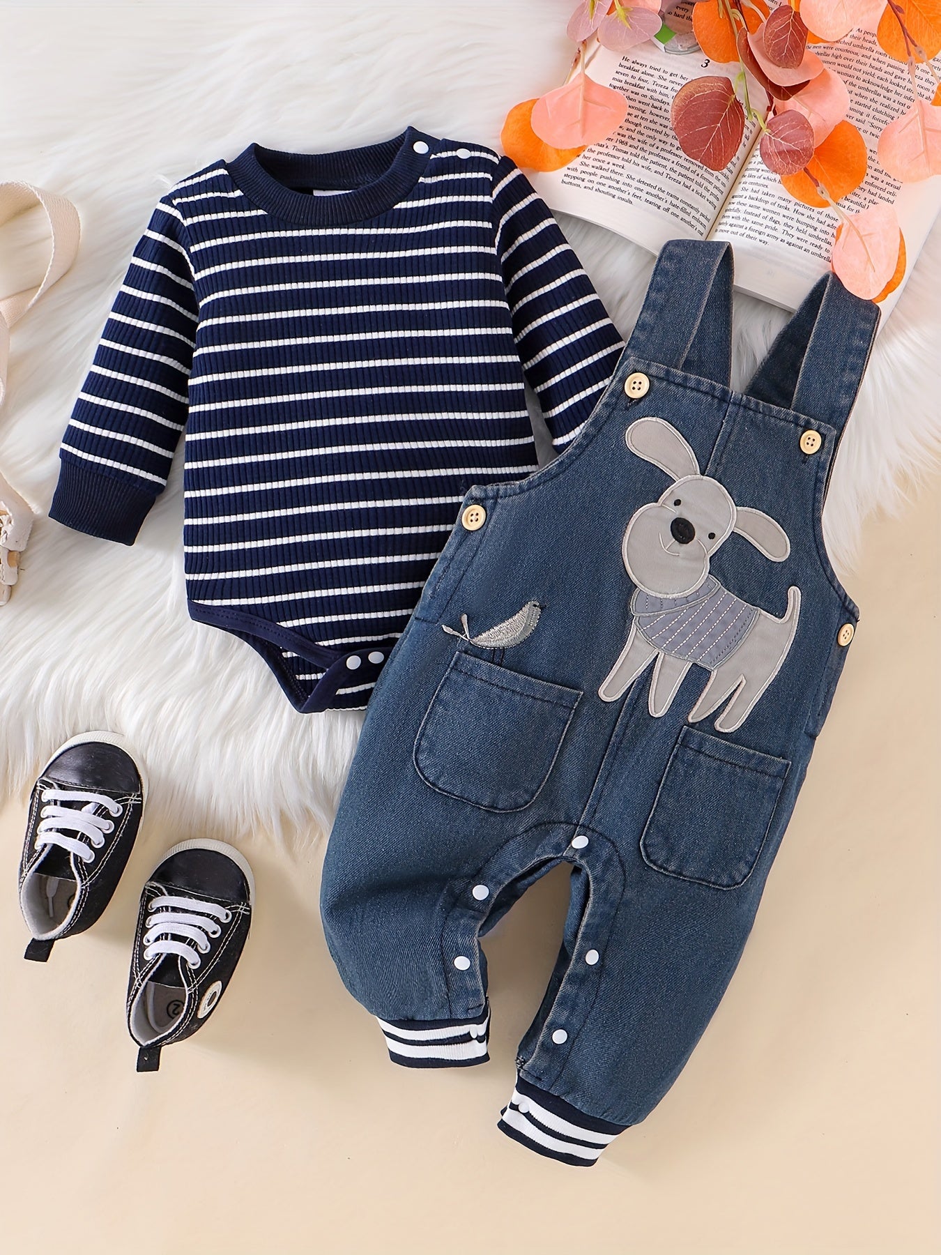 Cartoon Animal Pattern Suspender Trousers Jumpsuit Set