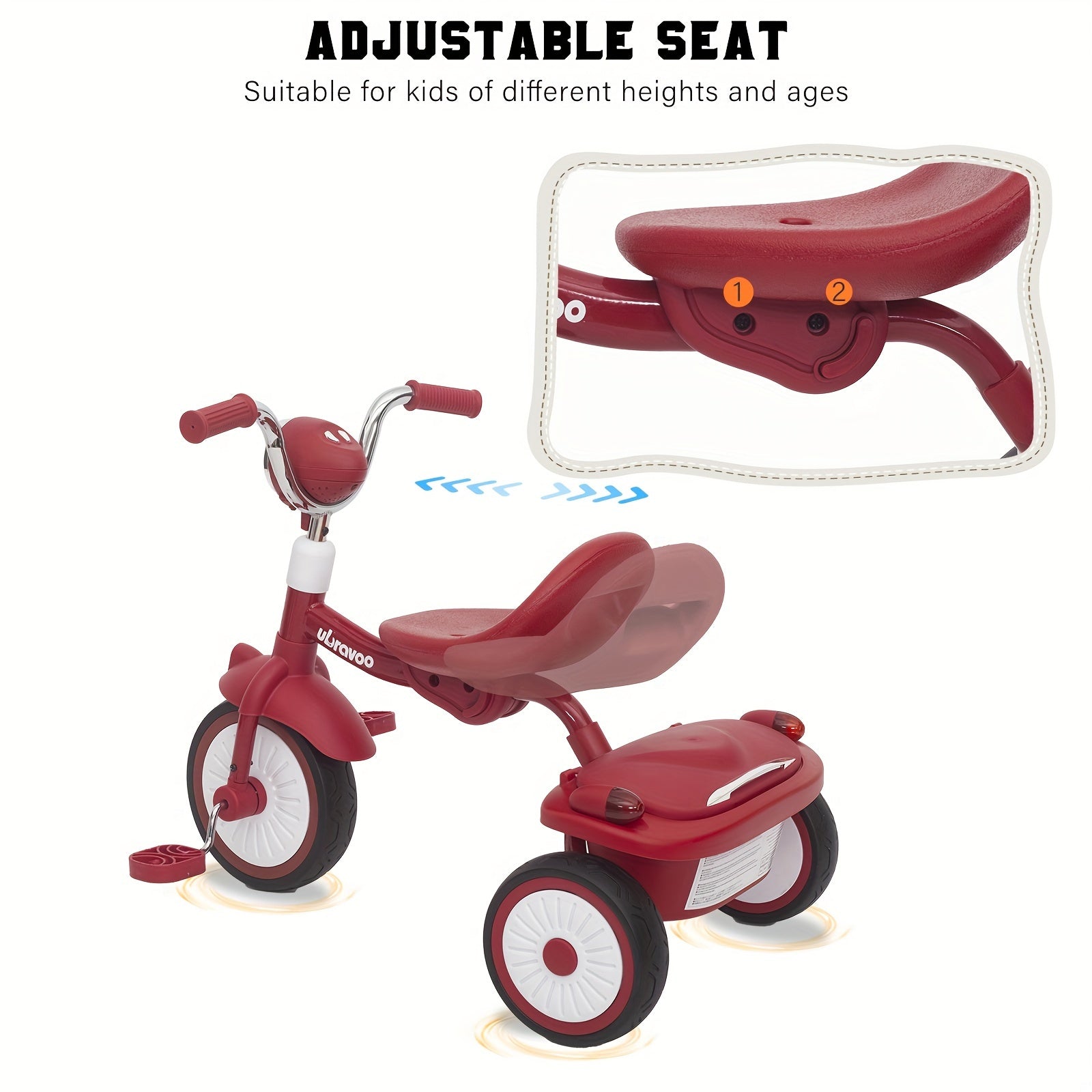 【GROW WITH YOUR CHILDREN】This toddler bike trike features a two-position adjustable saddle, perfect for leg length of 30-50 cm (11.8-19.7 inches). As your little one grows, the trike will still fit, ensuring years of fun and enjoyment.