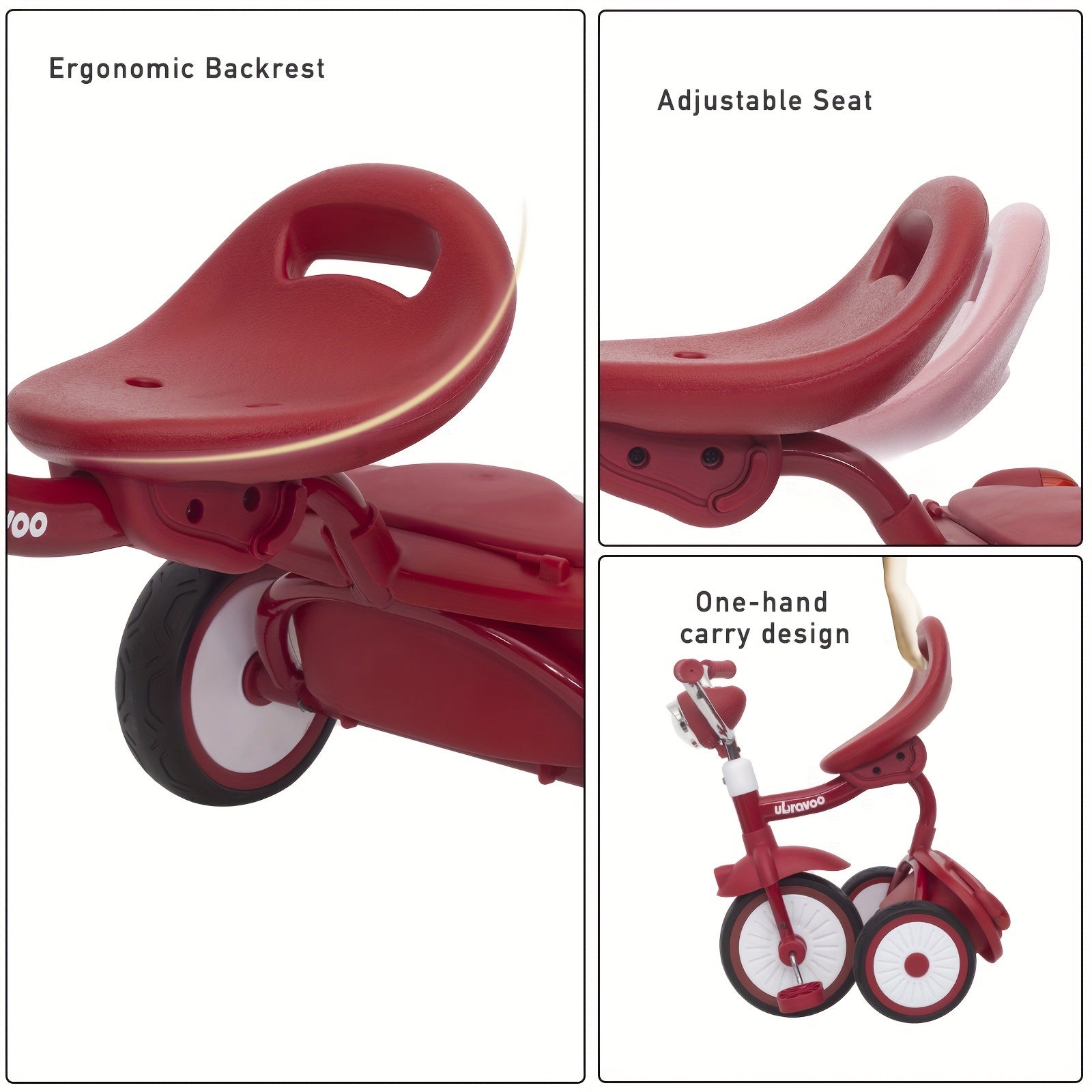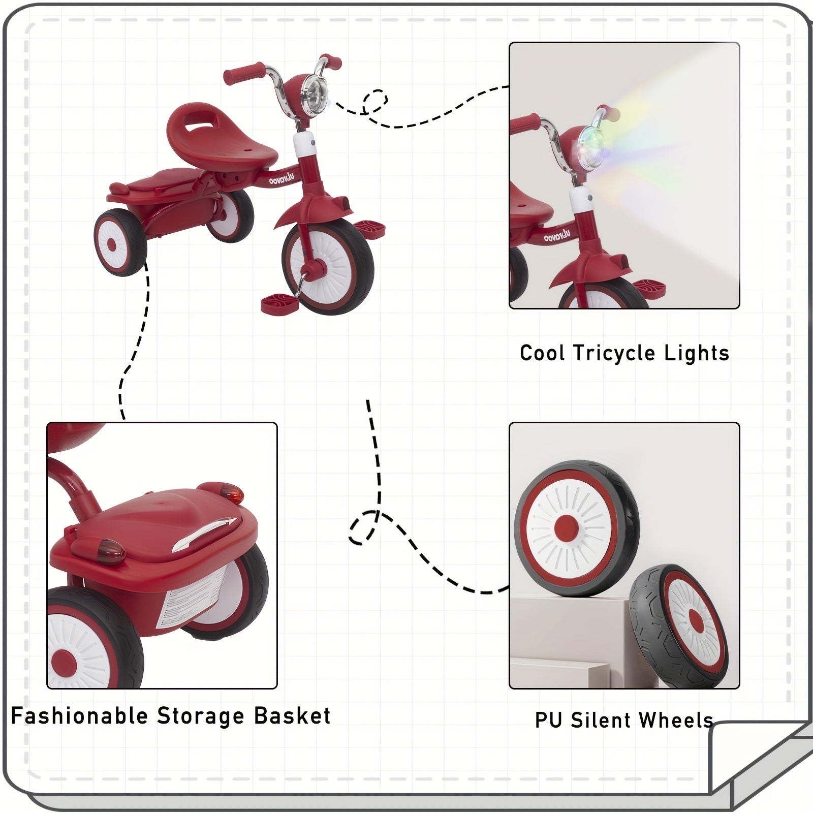 【QUALITY ASSURANCE】Crafted from high-strength high-carbon steel, this upgraded kids tricycle guarantees stability and a strong carrying capacity. The non-pneumatic shock-absorbing tires provide excellent skid resistance and wear resistance, making it suitable for