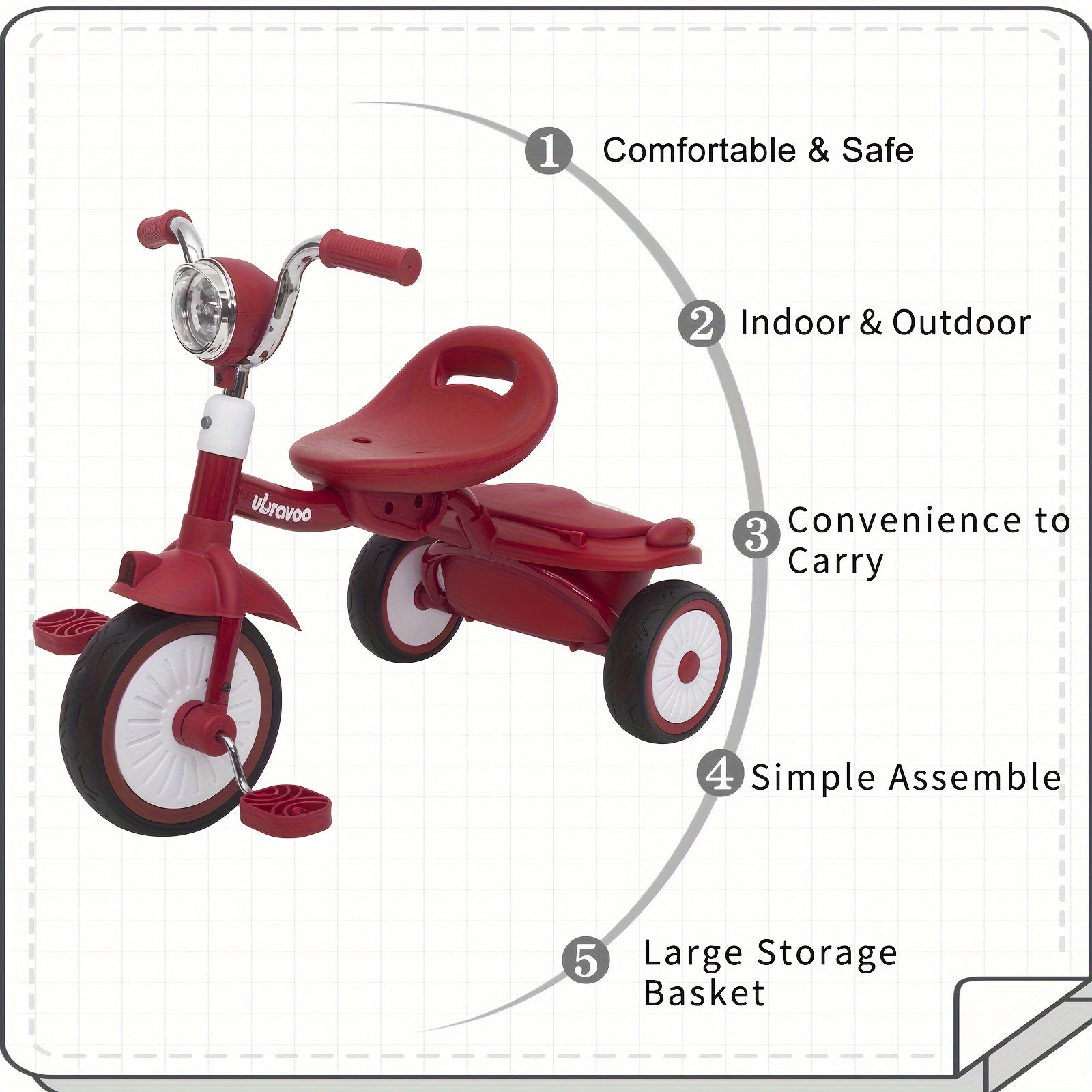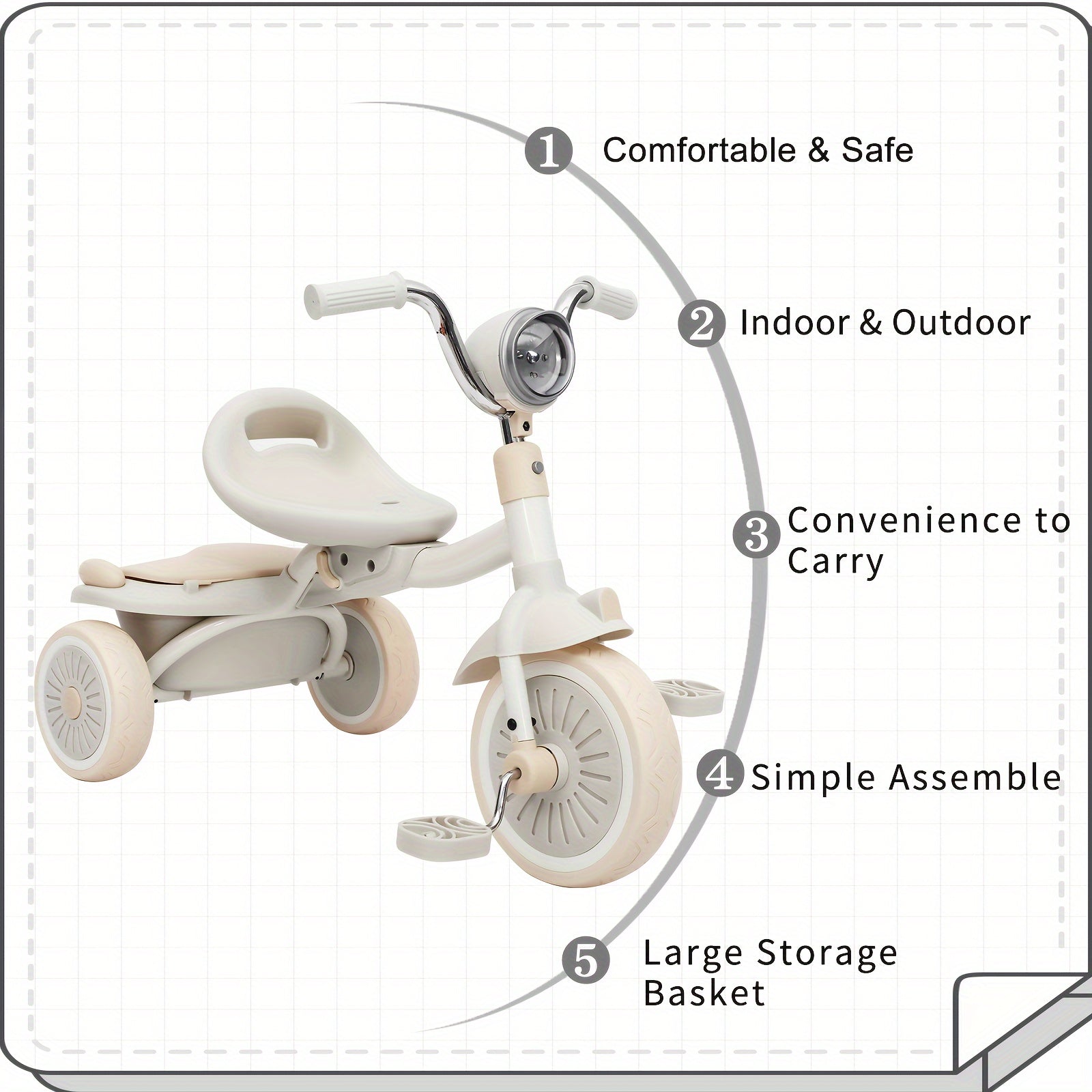 【EASY TO INSTALL AND USE】The structural frame is straightforward to assemble and can be easily set up in just a few minutes with the included manual. The baby trike bike comes with a convenient storage basket, allowing you to keep various small toys for your baby.