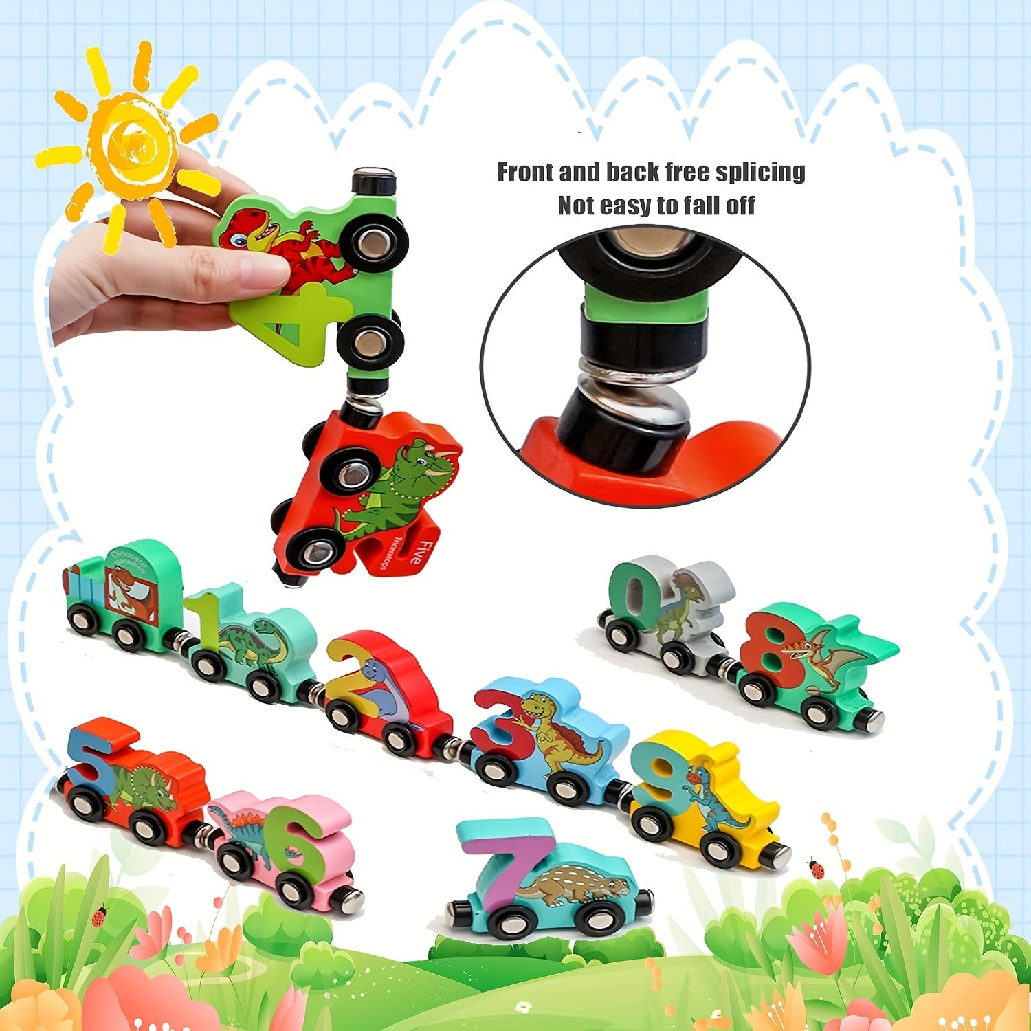 Magnetic Wooden Dinosaur Train Toys With Numbers ,14Pcs