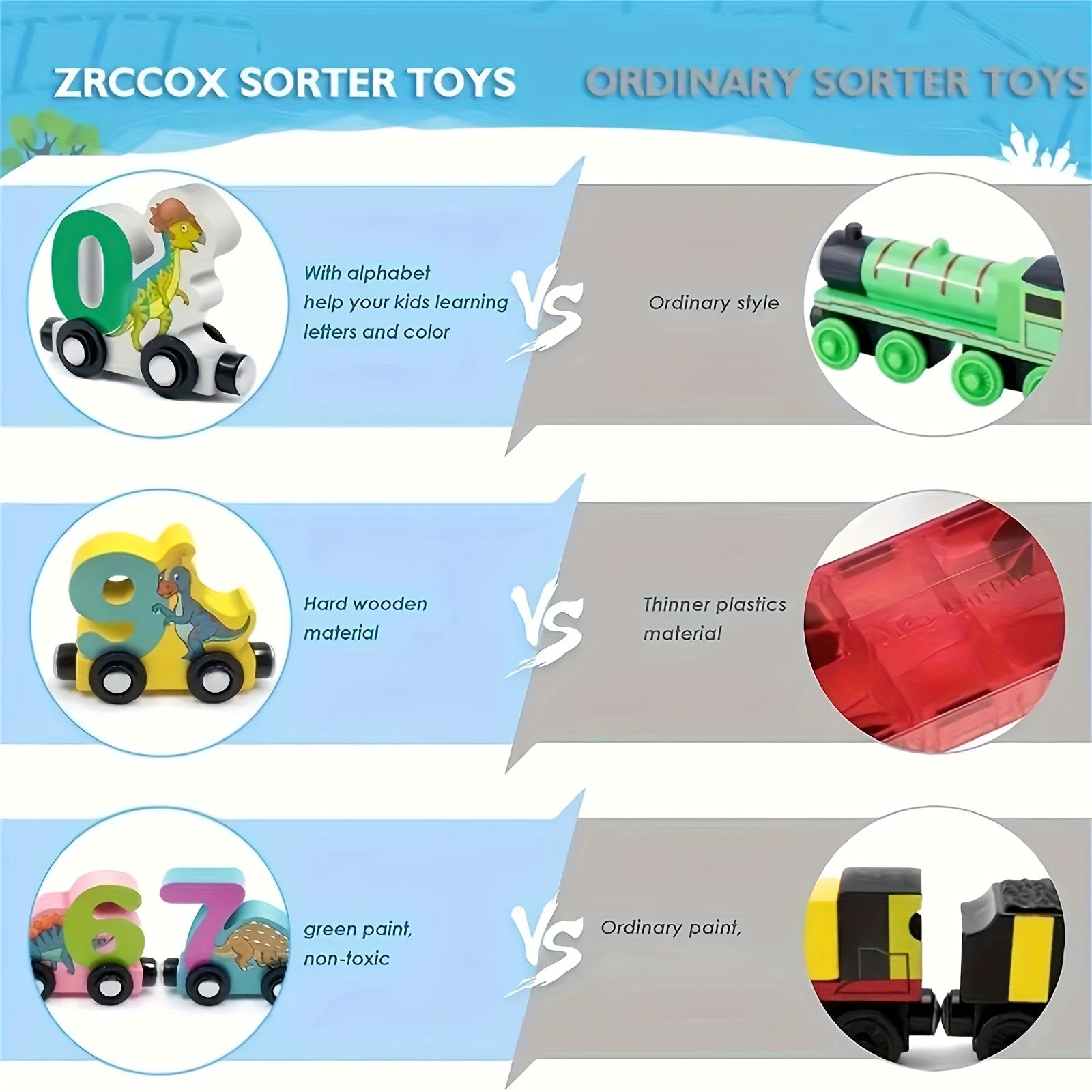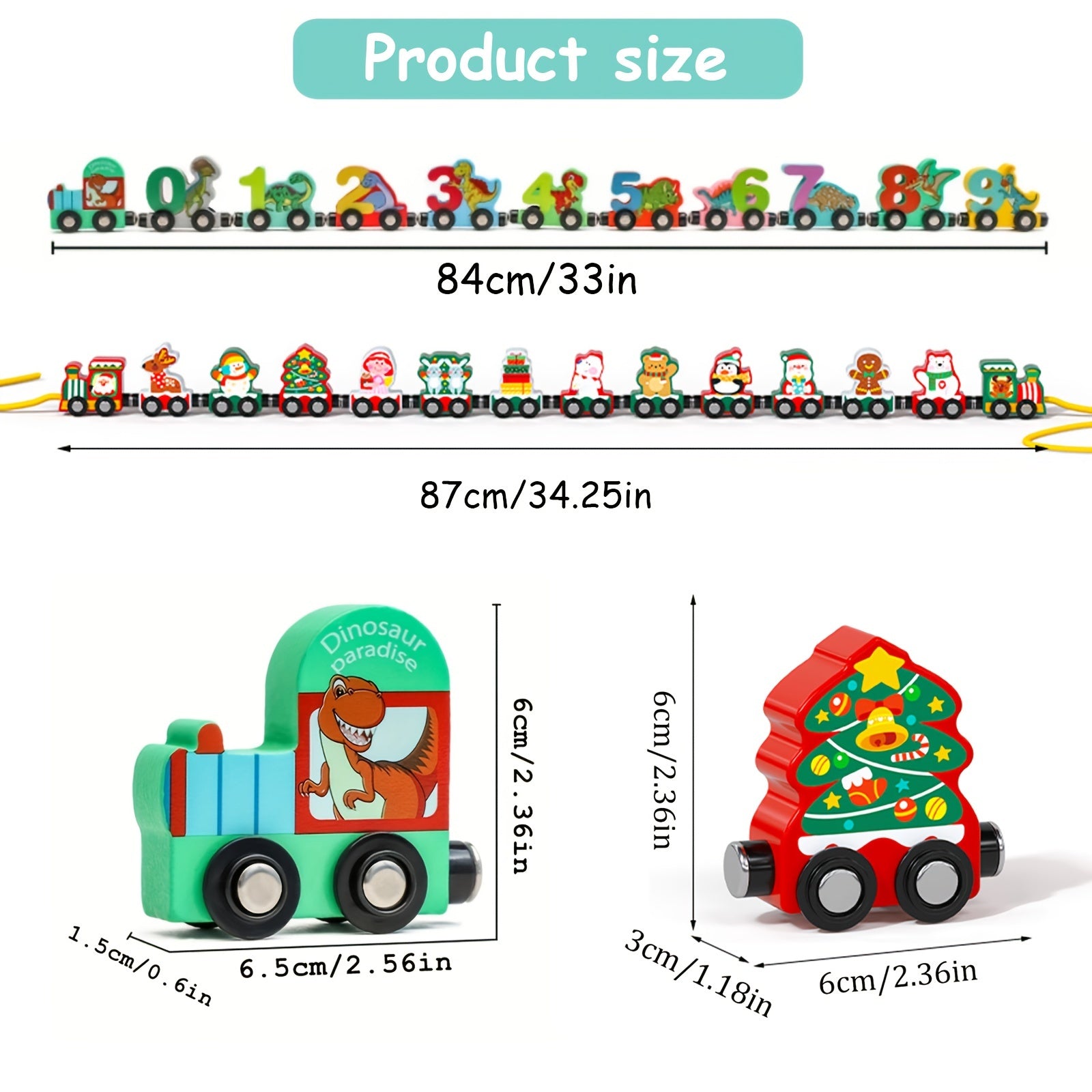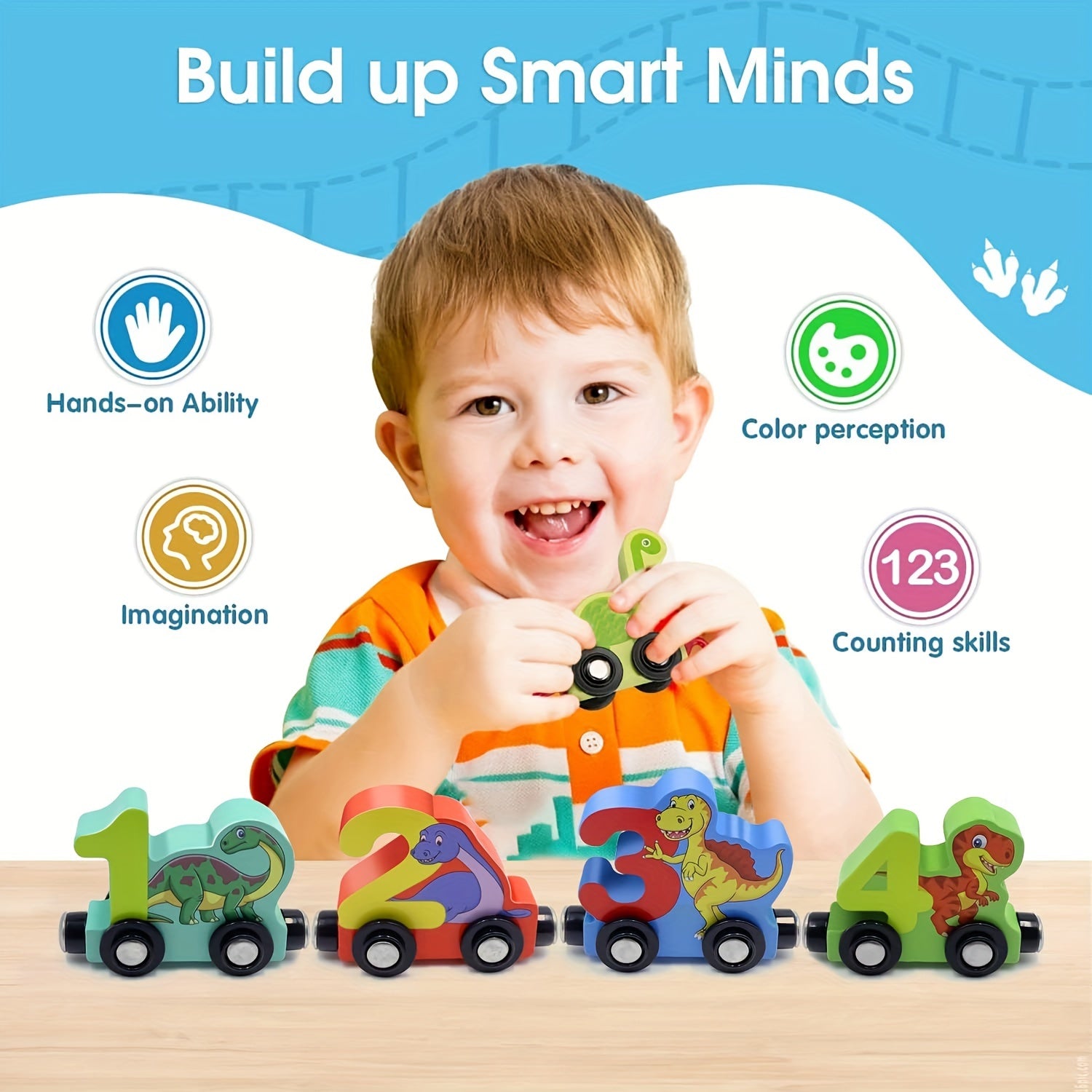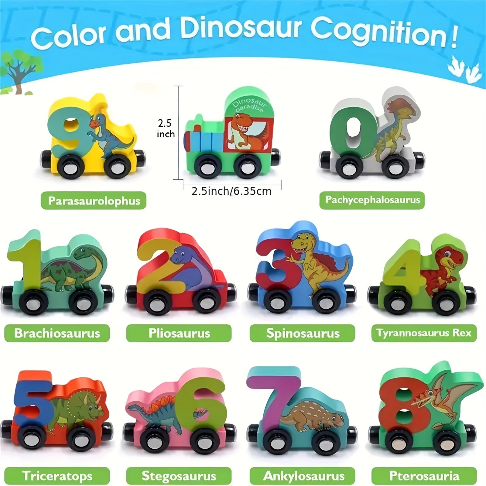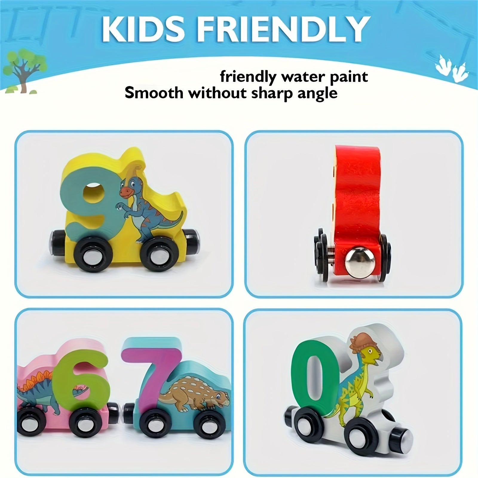 【Great Gift】The high-quality wooden dinosaur digital train toy is a very practical and educational toy, well packaged, it is a perfect gift for train or dinosaur lovers and creative people, it can attract children's interest in learning, is Great gift choice for birthdays, holidays, Christmas and more.