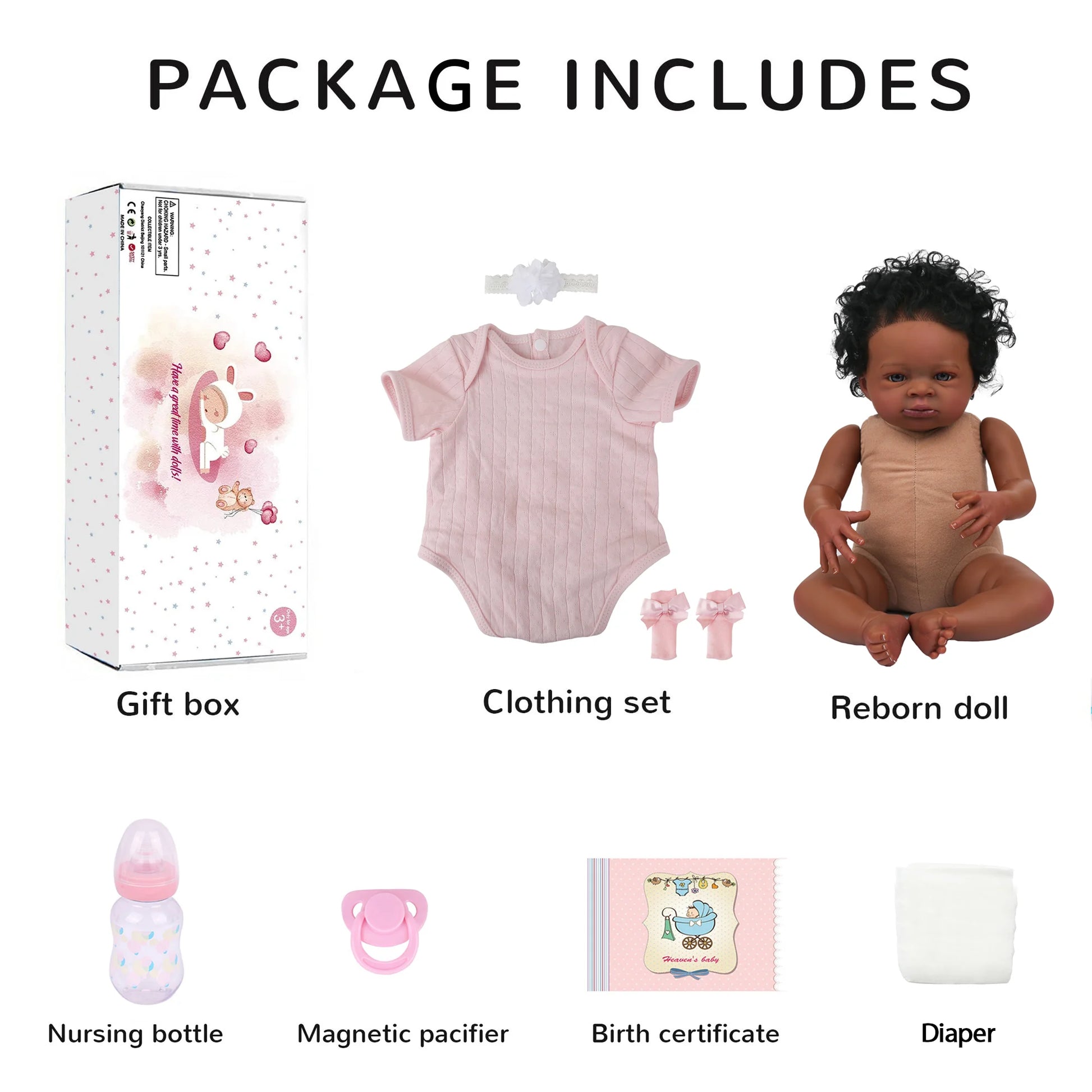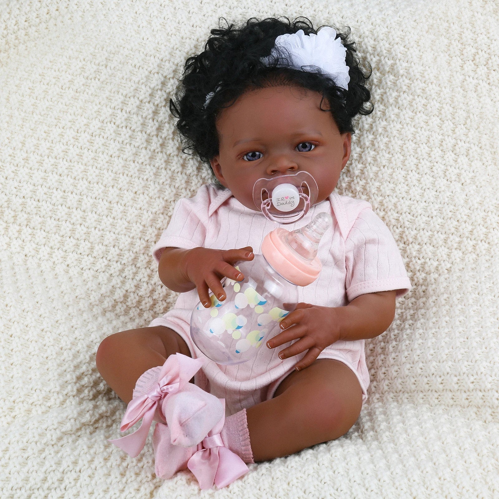 ❤ Unparalleled Realism & Soft Touch - Experience the unparalleled realism of our 20-inch African American reborn baby girl. Mimicking the size and weight of a genuine newborn, her vinyl head, arms, and legs combined with a soft cloth body can be posed in various ways, delivering a touch of authenticity.