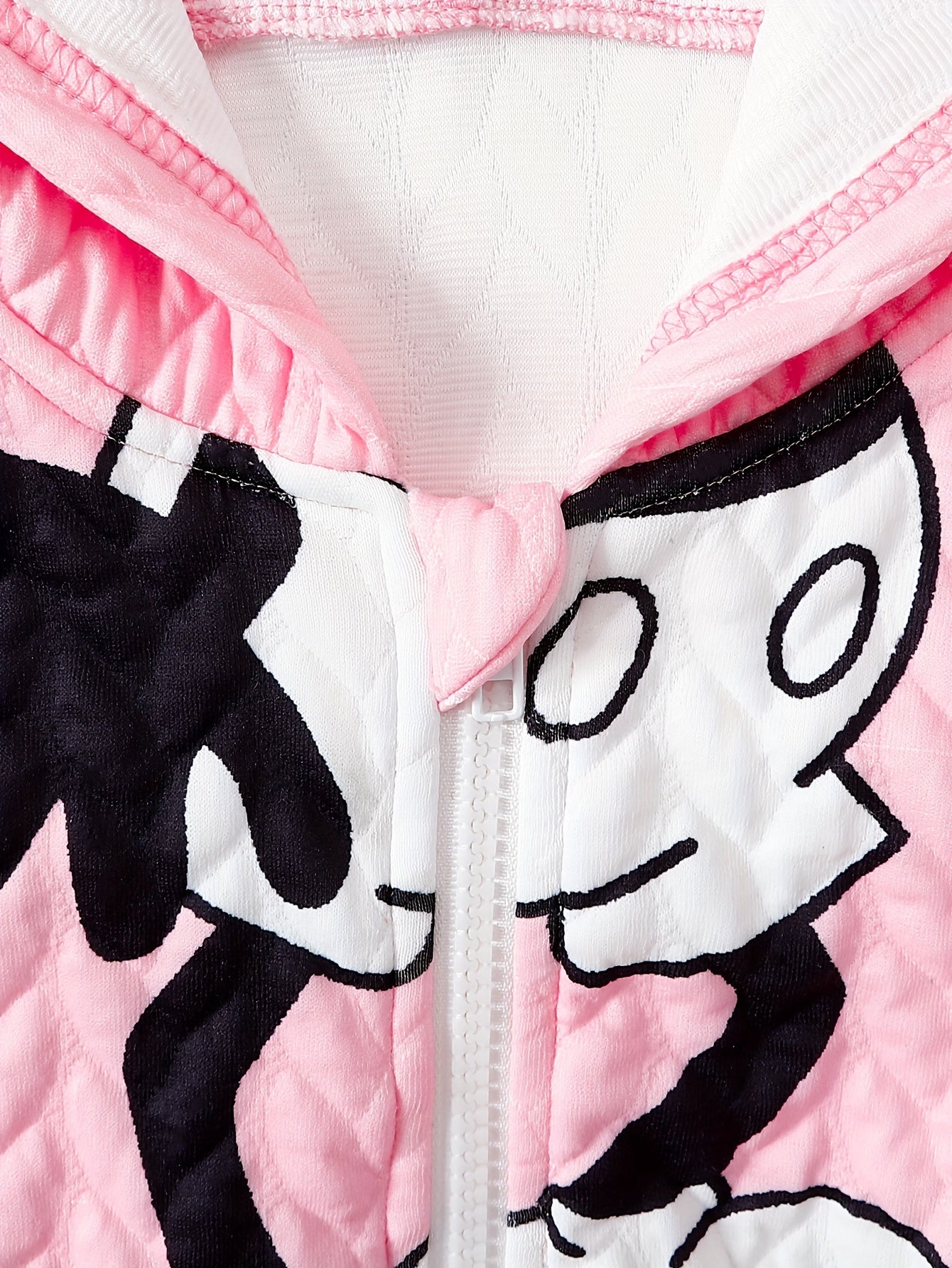 Toddler'S Cute Cartoon Pattern Quilted Fleece-Lined Hoodie