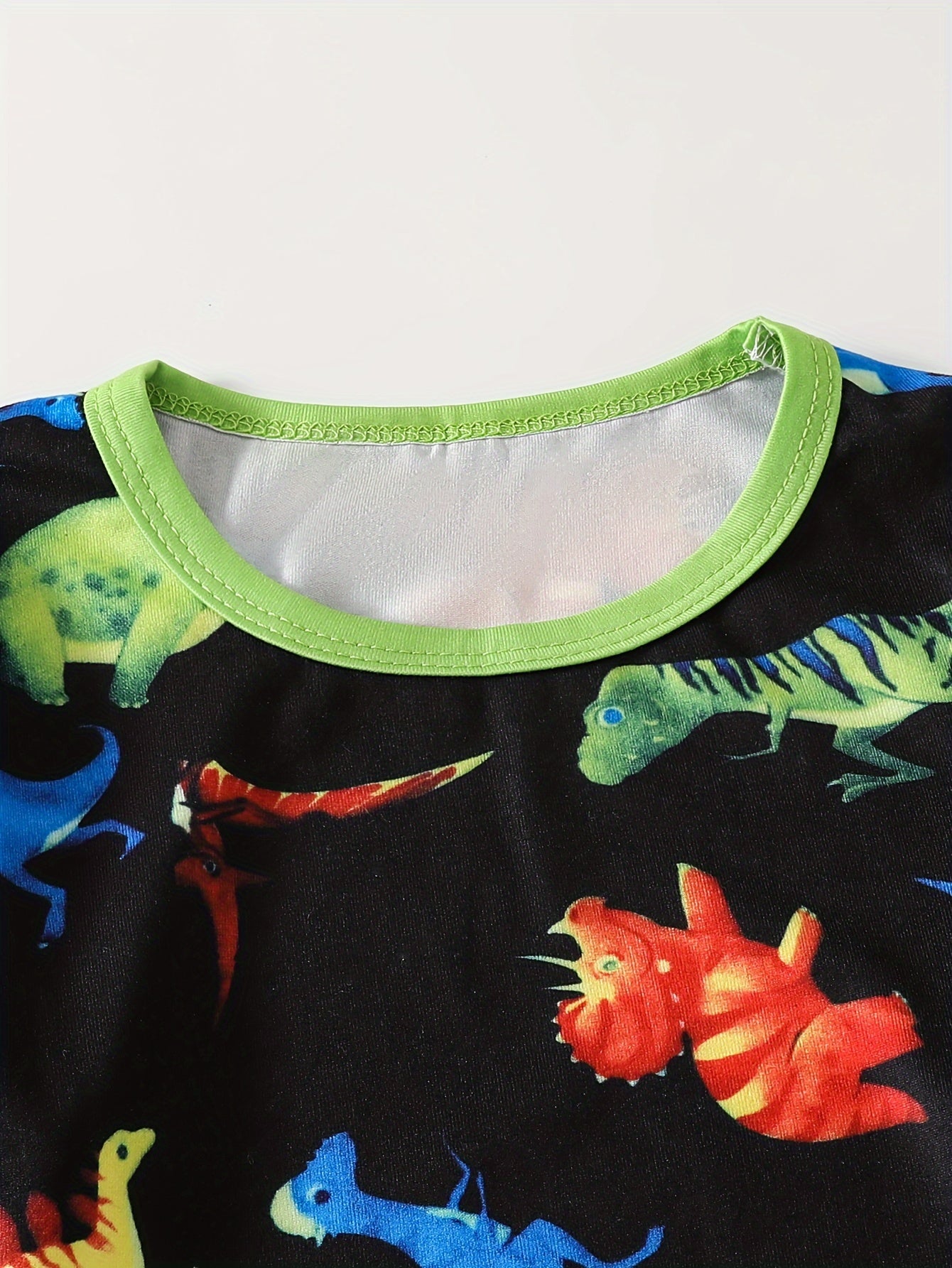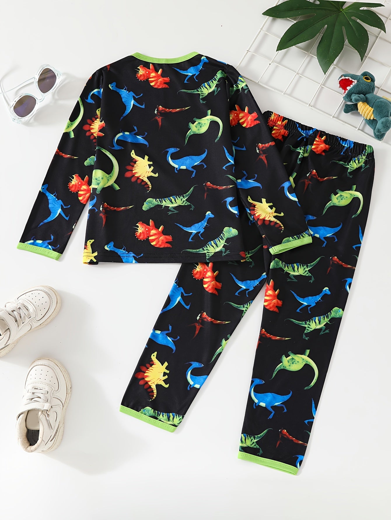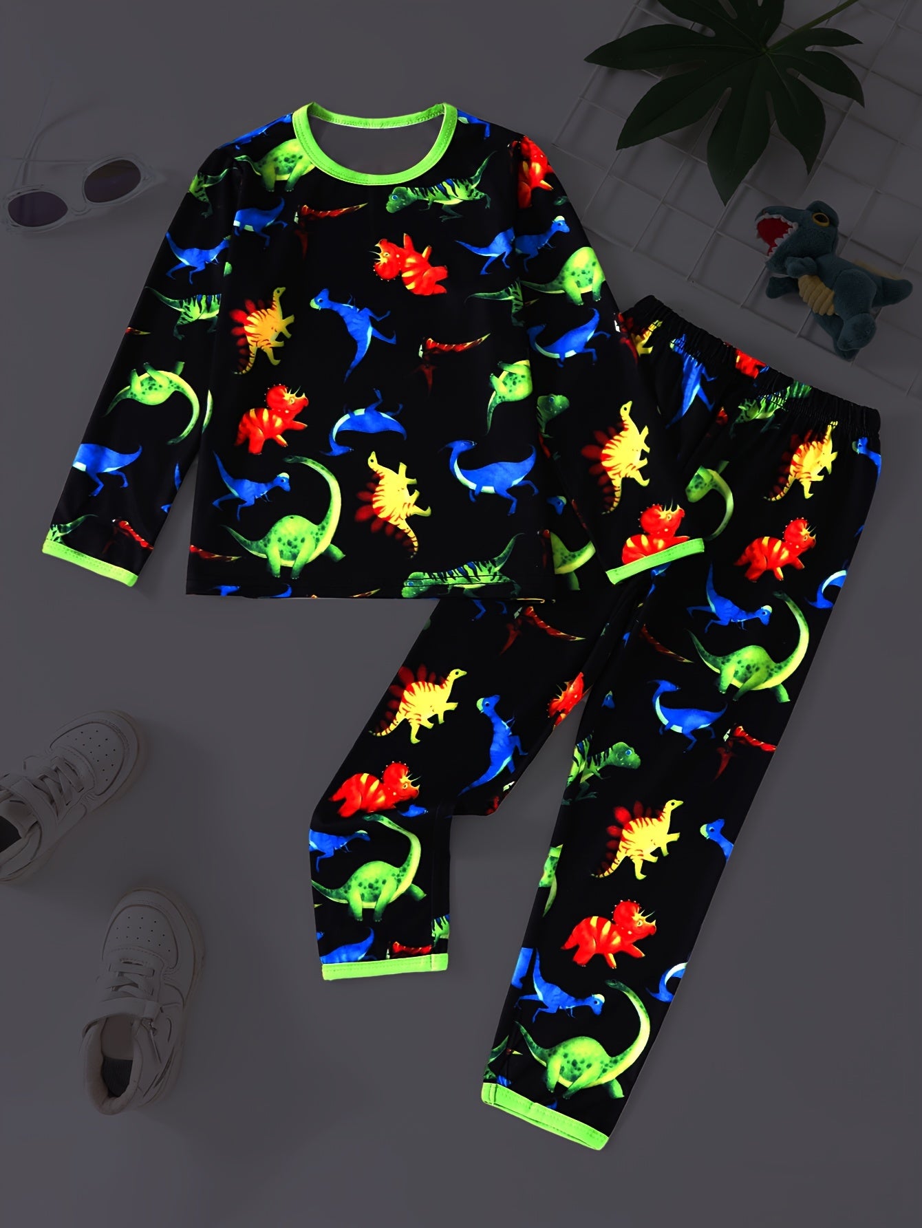 Trendy Colorful Dinosaur Print Round Neck Long Sleeve T-shirts & Trousers