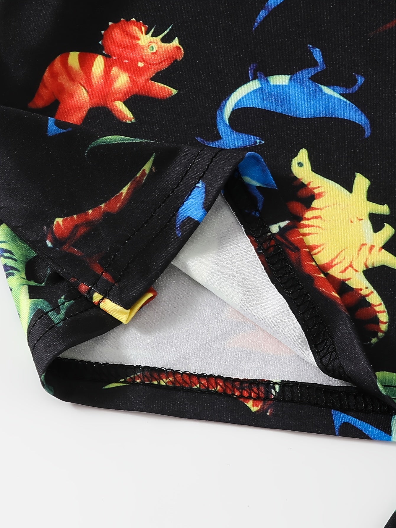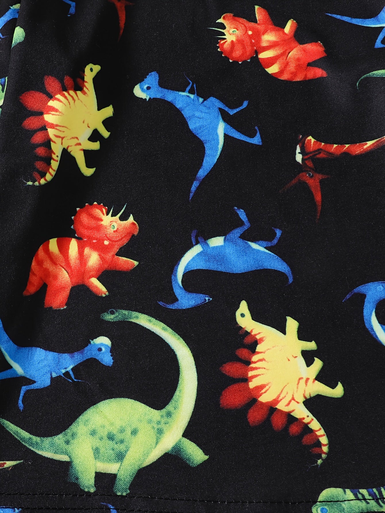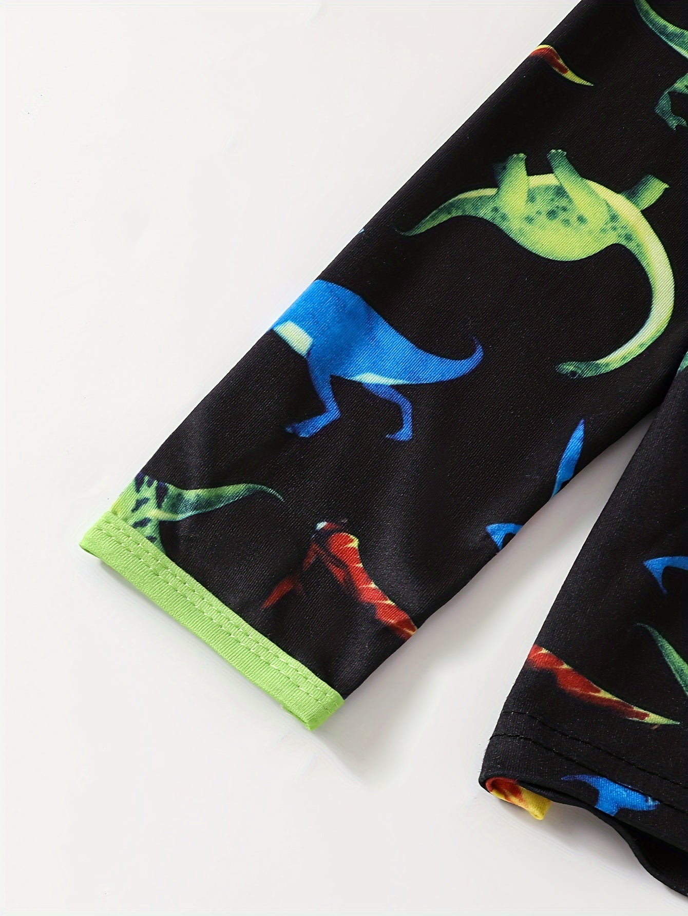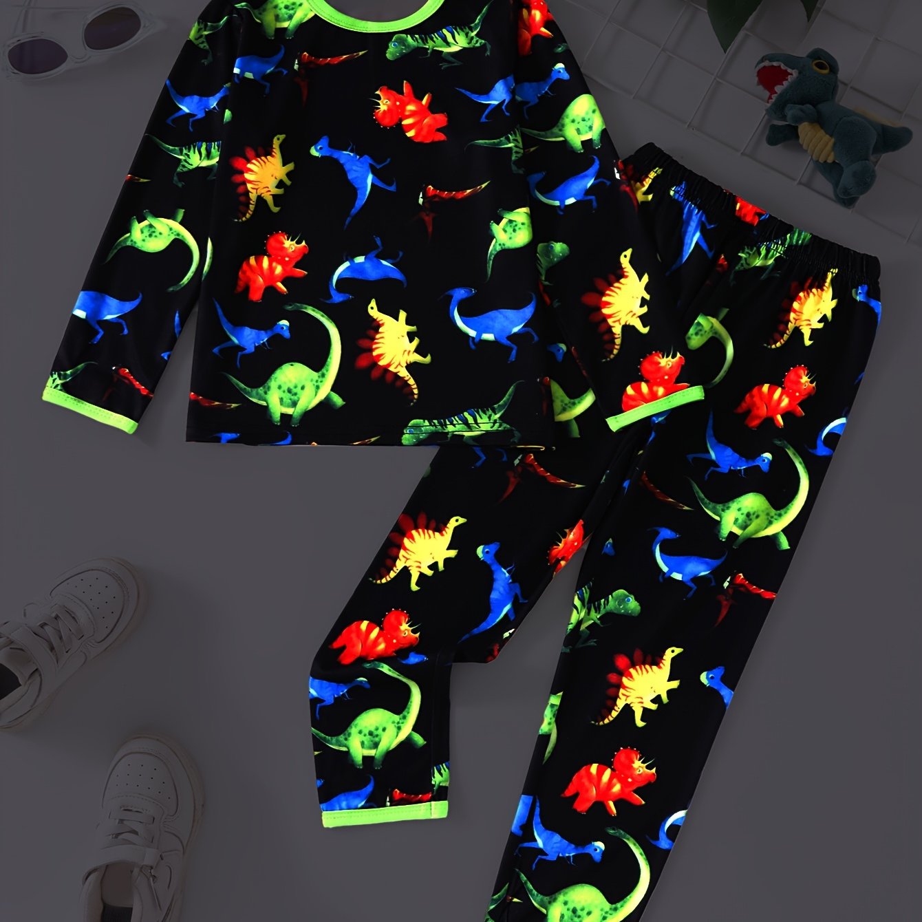 Trendy Colorful Dinosaur Print Round Neck Long Sleeve T-shirts & Trousers