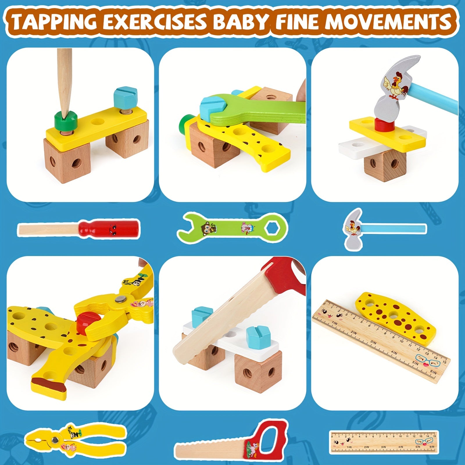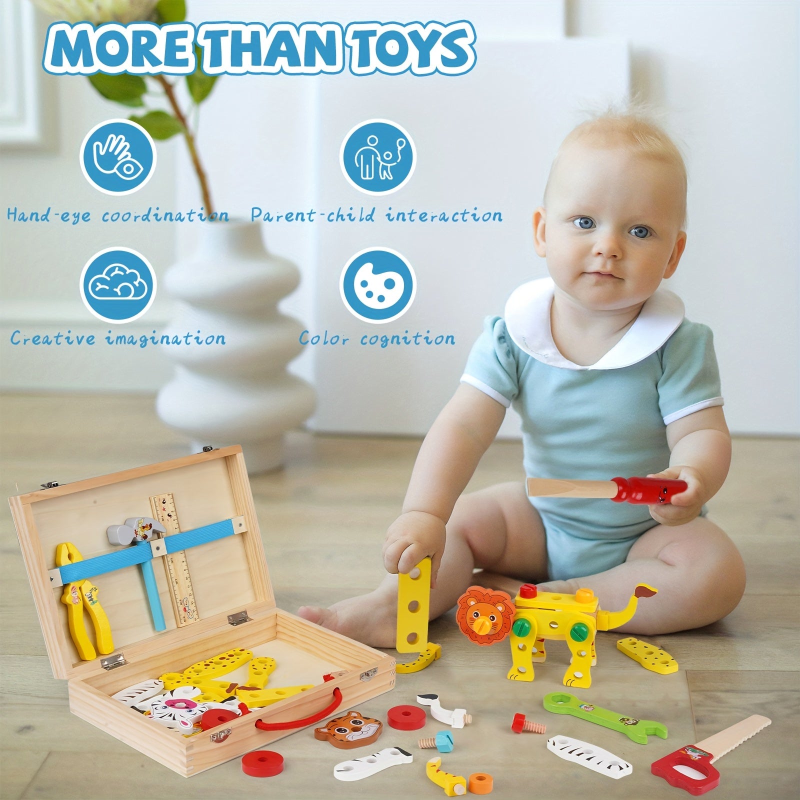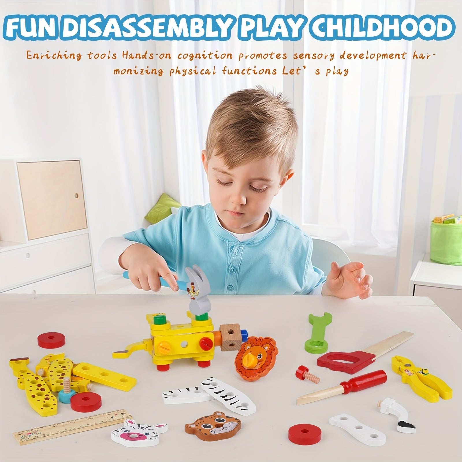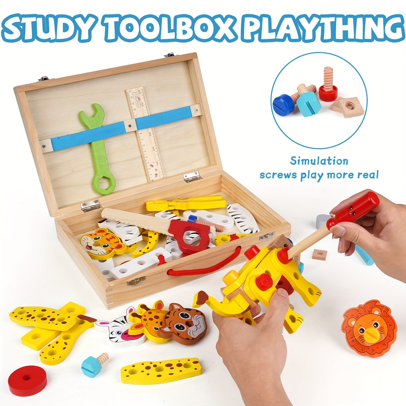 Wooden Kids Tool Kit and DIY Animal Building Block Toy,