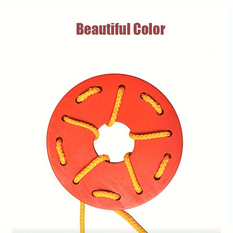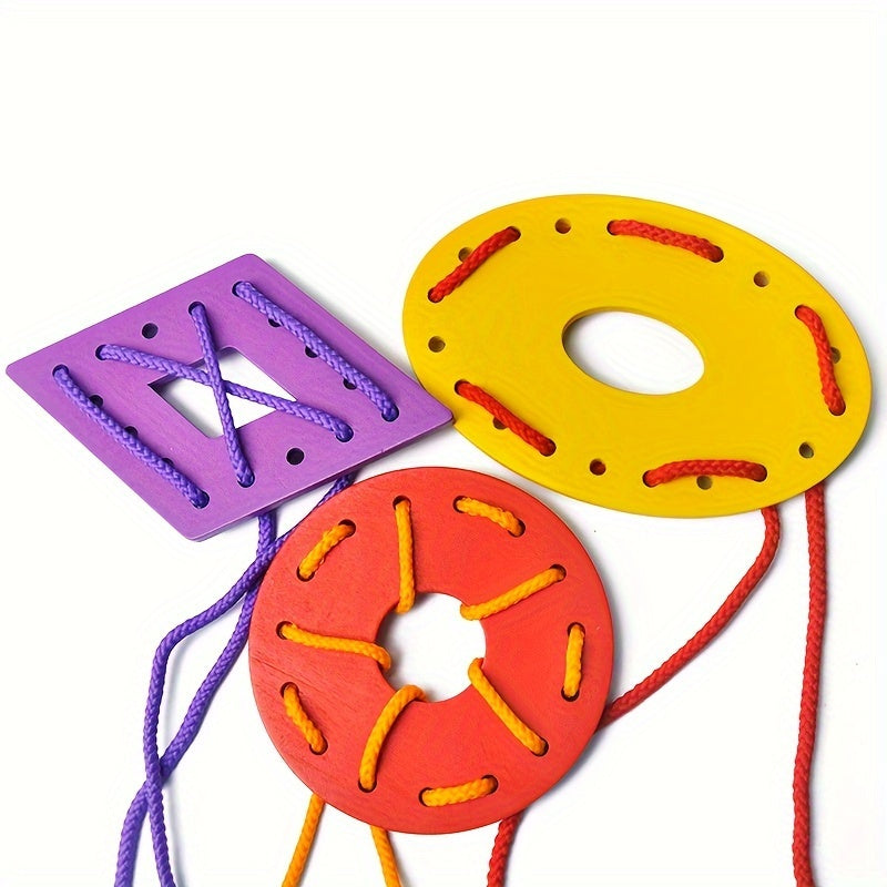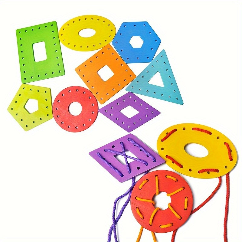 Wooden Threading Geometric Shape Colorful Lacing Boards,